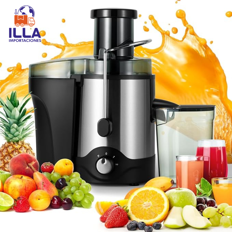 Cuenta con un motor de alto rendimiento, cuchillas de acero inoxidable y un sistema de extracción rápida que separa eficazmente la pulpa del líquido, garantizando jugos frescos, sin grumos y listos para disfrutar. Su diseño ergonómico y fácil de limpiar la convierte en una herramienta práctica y duradera para el día a día.